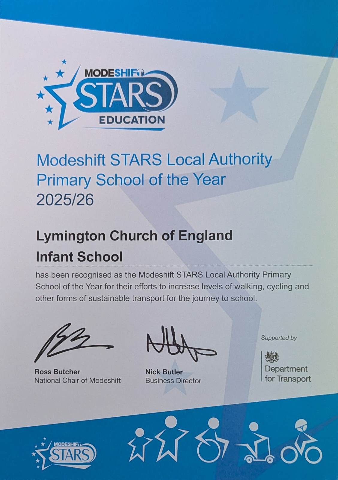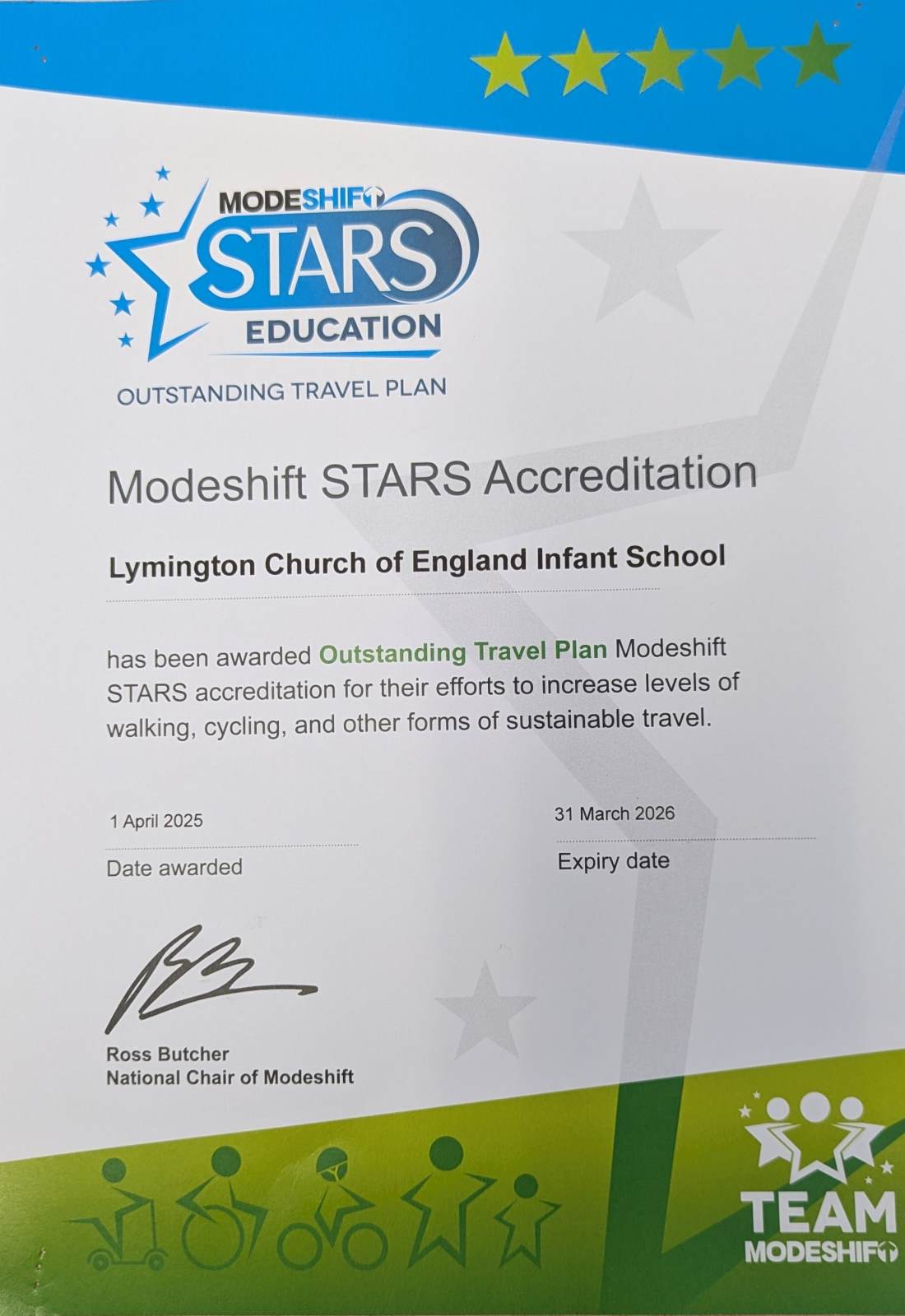 We are part of a national schools award scheme called Modeshift STARS (Sustainable Travel Accreditation and Recognition). This scheme was established to recognise schools that have demonstrated excellence in supporting cycling, walking and other forms of sustainable travel. Modeshift STARS aims to improve the health and wellbeing of young people and we are delighted and very proud to have achieved our outstanding level Modeshift STARS accreditation!